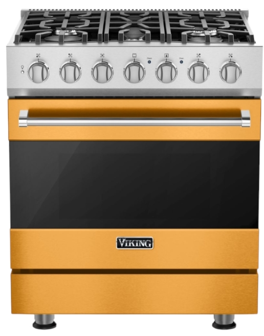 The Viking® Daffodil 30" Dual Fuel Range features a stunning antique bronze finish and combines gas burners with electric convection. It offers precision cooking and a timeless look, enhancing any kitchen's style.Read More