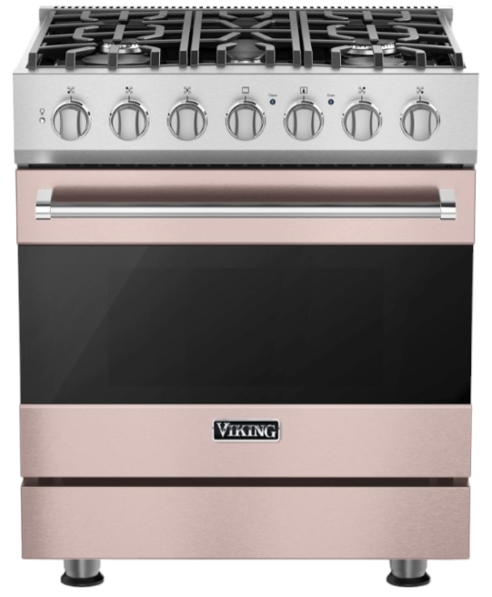 The Viking® Blush 30" Dual Fuel Range features a stunning antique bronze finish and combines gas burners with electric convection. It offers precision cooking and a timeless look, enhancing any kitchen's style.Read More